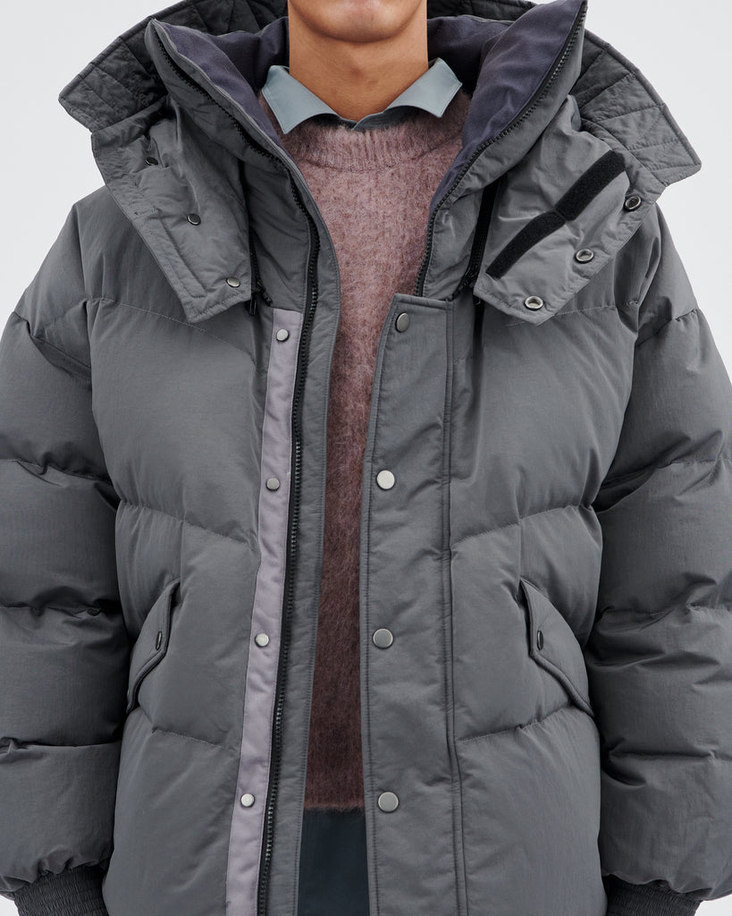 - Oversized fit goose down parka with PU coated nylon. (water resistant)