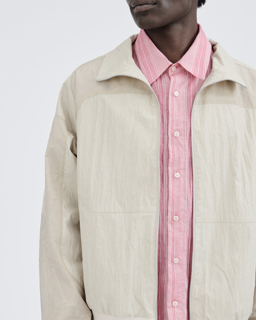 - Relaxed fitted track jacket made with fine cotton/nylon.