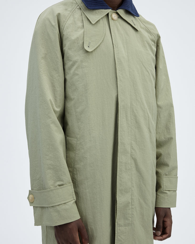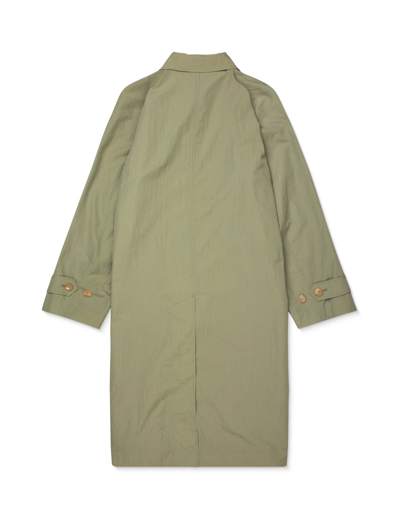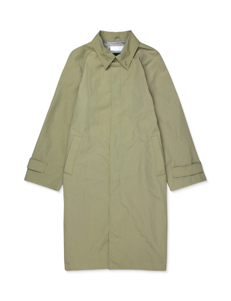 - Oversized long fitted coat made of Italian water-resistant nylon (Olmetex).