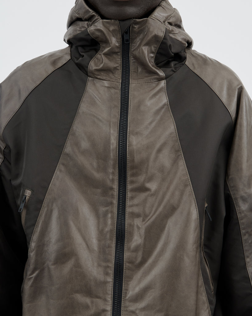 - Regular fitted jacket made of Italian lamb skin and nylon.